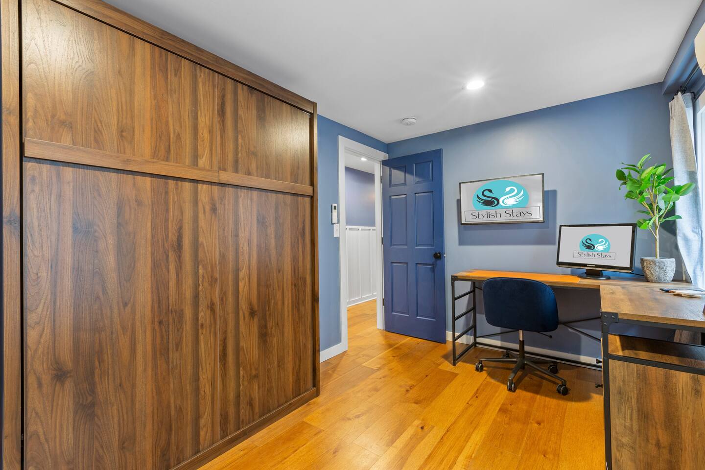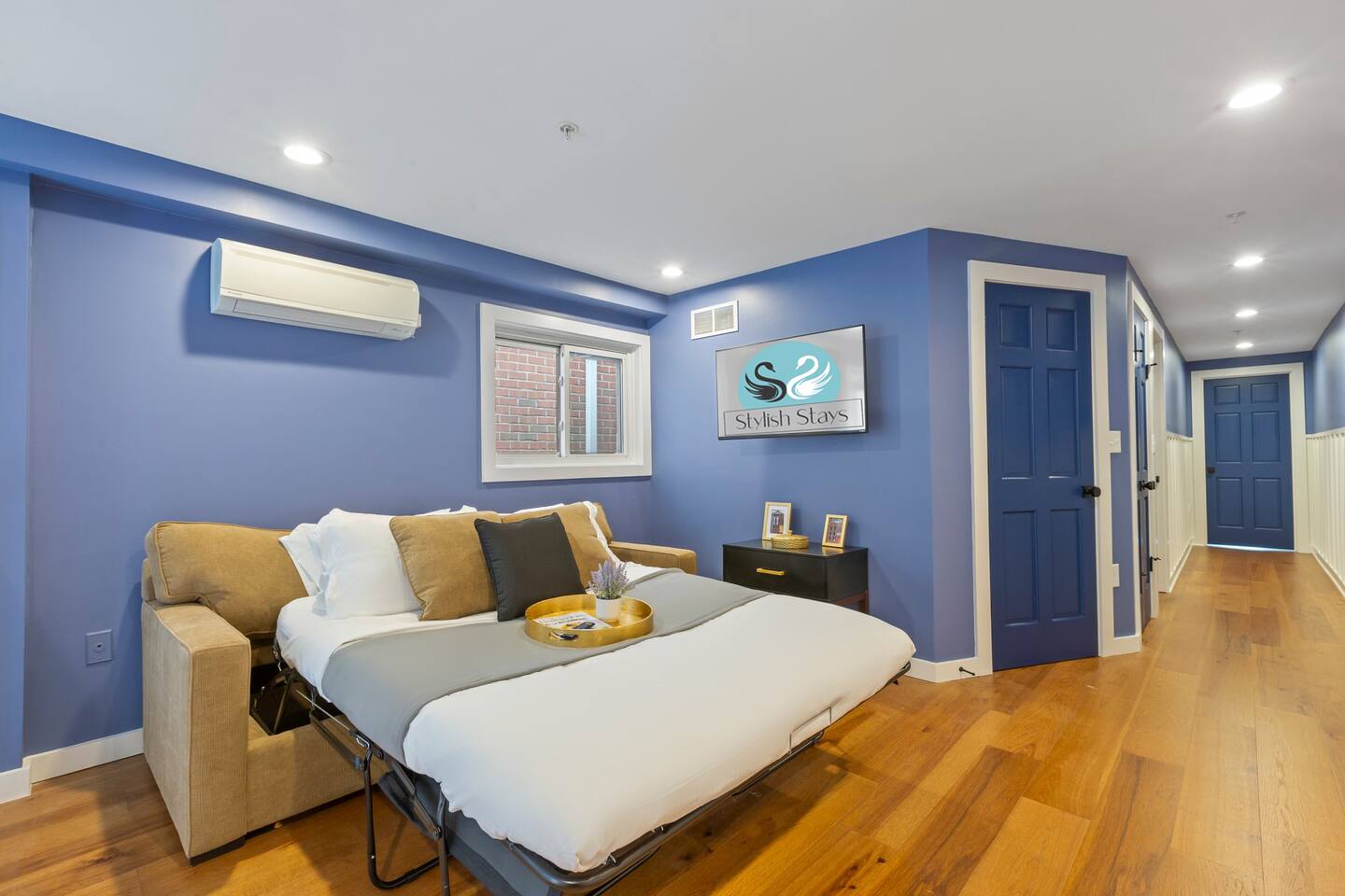 Enjoy your stay with us! This space offers: ☞ Professionally Designed, Furnished, and Appointed ☞ 3 Bedrooms Comfortably Sleeping 8 (1 King, 1 Queen, 1 Full Murphy Bed, 1 Queen Sofa Bed) ☞ 2 Full Baths w/ 1 bathtub and 1 shower ☞ High Quality Helix mattresses for a restful night's sleep ☞ Fully appointed Kitchen with electric range and convection oven, full sized microwave/dishwasher/fridge, plenty of counter and cabinet space laid out for entertaining and hosting ☞ Deck off second bedroom, Brick Patio, and fenced yard w/ full outdoor dining set and Adirondacks so you can truly set off the vibes ☞ Black out curtains in each bedroom when you want it darker ☞ 2 Story Entry Foyer for a spacious airy feel ☞ Dedicated work area with second monitor ☞ Reliable FAST Internet Connection (300mbps) ☞ Smart TVs in every living space w/ Apple TV and Chromecast ☞ Reliable WIFI throughout the home ☞ Full Sized Laundry in unit ☞ Fully Stocked Bathrooms w/ Paya brand bath amenities ☞ Nearby Restaurants/Shops/Historical Sites/Bars/Music Venues/Markets/Parks ☞ EZ Baltimore/DC/BWI Location ☞ Mellow lighting throughout ☞ High quality sheets and towels ☞ Quiet and comfort Inside, yet Vibrant City Life outside the door Here are some of our Past Guest comments from other properties we host: "Terrific host - very helpful and communicative." - Kelly "The host was communicative and accommodating. Would definitely stay here again!" - Ayla ☆☆BEDROOMS☆☆ This well thought out detached home accommodates 8 guests in 3 bedrooms. The stylish primary bedroom is on the first level and is fitted with a king-size bed w/ Helix Midnight Mattress, a closet for clothing storage, and door to rear brick patio living space. The second bedroom has a queen-size bed, closet, and door to rear deck overlooking the fenced yard. The third bedroom has a Full sized murphy bed w/ Helix mattress, large closet, and a full sized desk and chair with full sized monitor. Each bedroom has an individual ductless HVAC unit to control the climate for that room, and TV The Living Room has a sofa that converts to a queen sized pull out bed with memory foam mattress ☆☆BATHROOMS☆☆ There are two full and bathrooms in this home, each stocked with all the essentials you need for your stay. The first level bathroom has a walk-in shower, and the full sized washer/dryer units. The second full bathroom is on the second level off the living room and has a shower/tub combo. ☆☆KITCHEN AND DINING☆☆ The combined kitchen and dining area was designed for serious cooking and entertaining! Fully equipped with all appliances, utensils, cookware, and glassware you will feel right at home. With a 4-burner glass cooktop, convection oven, microwave, full sized dishwasher and refrigerator, you will thank yourself for staying with us so you have the ability to make a full Thanksgiving meal if you wanted to! There is total dining seating for 8, multiple coffee making options, and full cocktail making equipment! ☆☆OUTDOOR SPACE☆☆ There is a large brick patio with 8 person dining table, outdoor sofa, and Adirondack chairs offering ample seating options. Enjoy the night sky in this fully fenced yard. The remainder of the yard is rubber mulch ☆☆LOCATION☆☆ Annapolis is known for being one of the oldest and most storied state capitols in the country. The surrounding neighborhoods are picturesque with historically designated homes and businesses. You are a 5 min drive from EVERYTHING Annapolis has to offer, but where this property really shines is it’s ease of walkability to everywhere. There are great restaurants starting literally 2 doors down from us! ☆☆Guest Agreement☆☆ For any bookings of 30 days or more, the guest will be required to sign a Guest Agreement. A copy of this agreement will be provided. For stays over 30 nights, we include monthly spot cleaning and the first $350 of internet, electricity, and water utilities. Any overages will be due from Guest. More frequent cleanings, refills and full cleanings are available at an additional fee, which will be determined later, including the mode of payment.