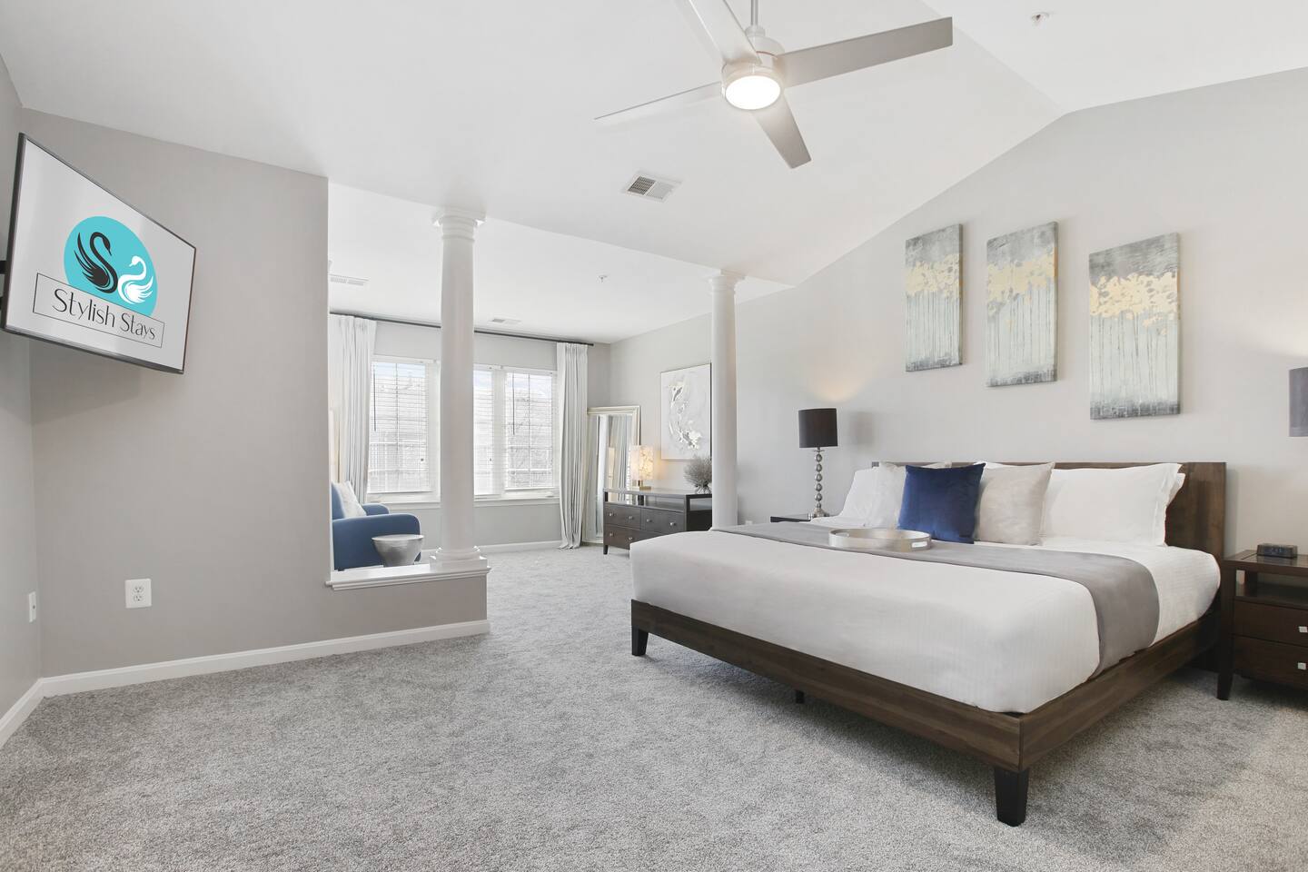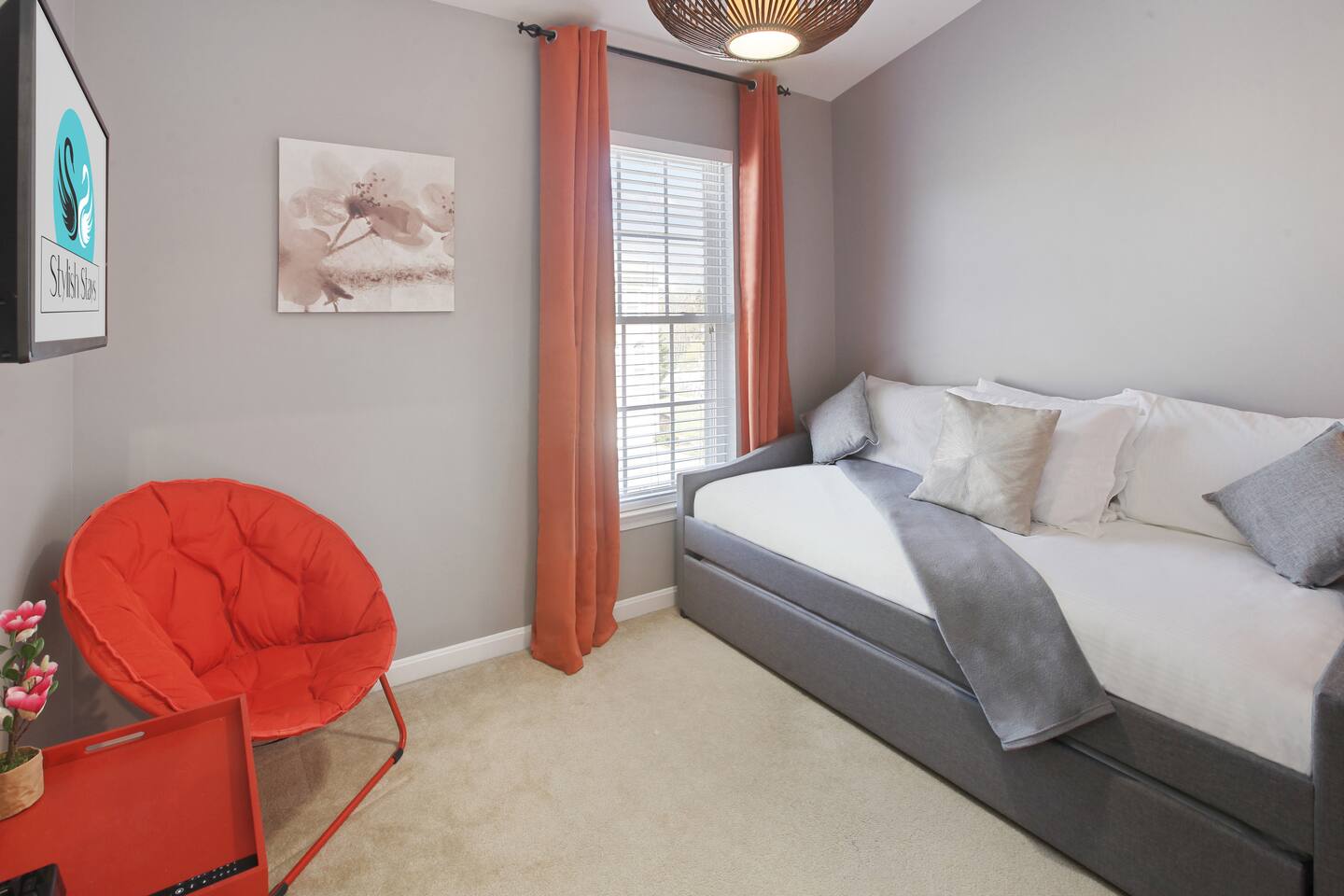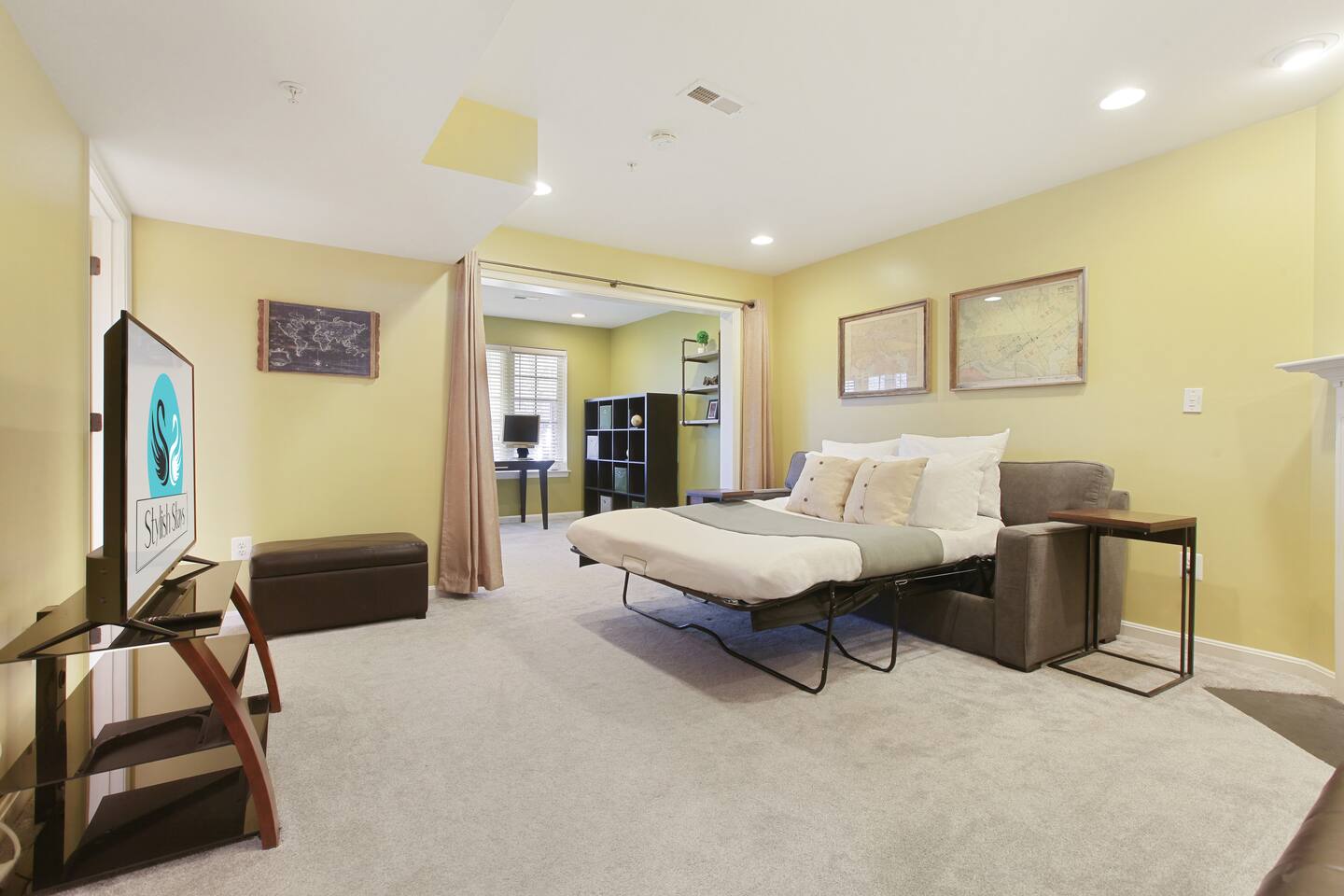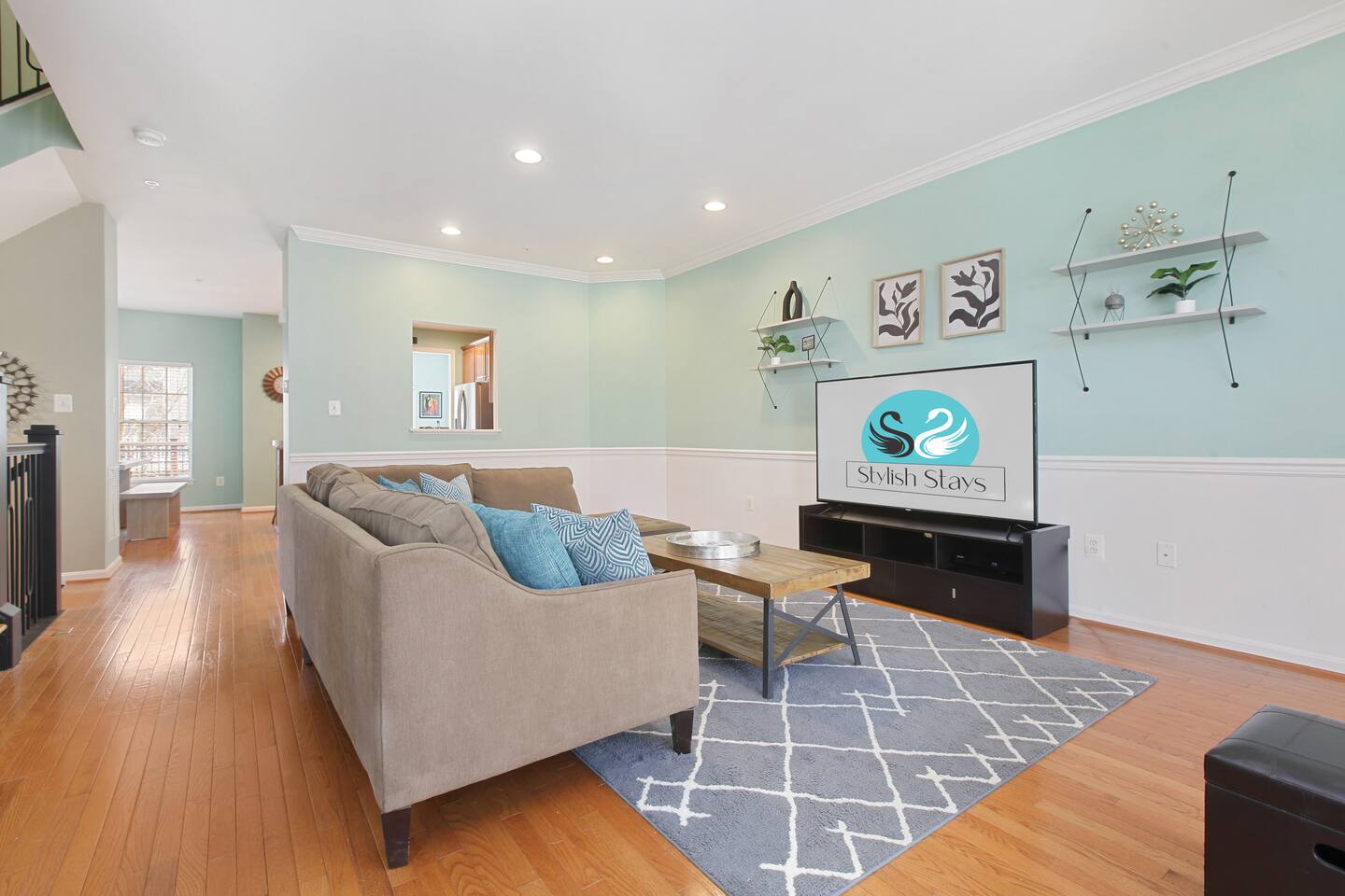 This elegantly chic townhome, designed by Stylish Stays, is the perfect place for an extended stay in a central location convenient to Baltimore City & Washington DC. Feel free to spread out through the spacious floorplan, and taking advantage of all the close by shops, restaurants, stores, parks, and major routes! 20 Min drive to Baltimore 40 Min drive to DC