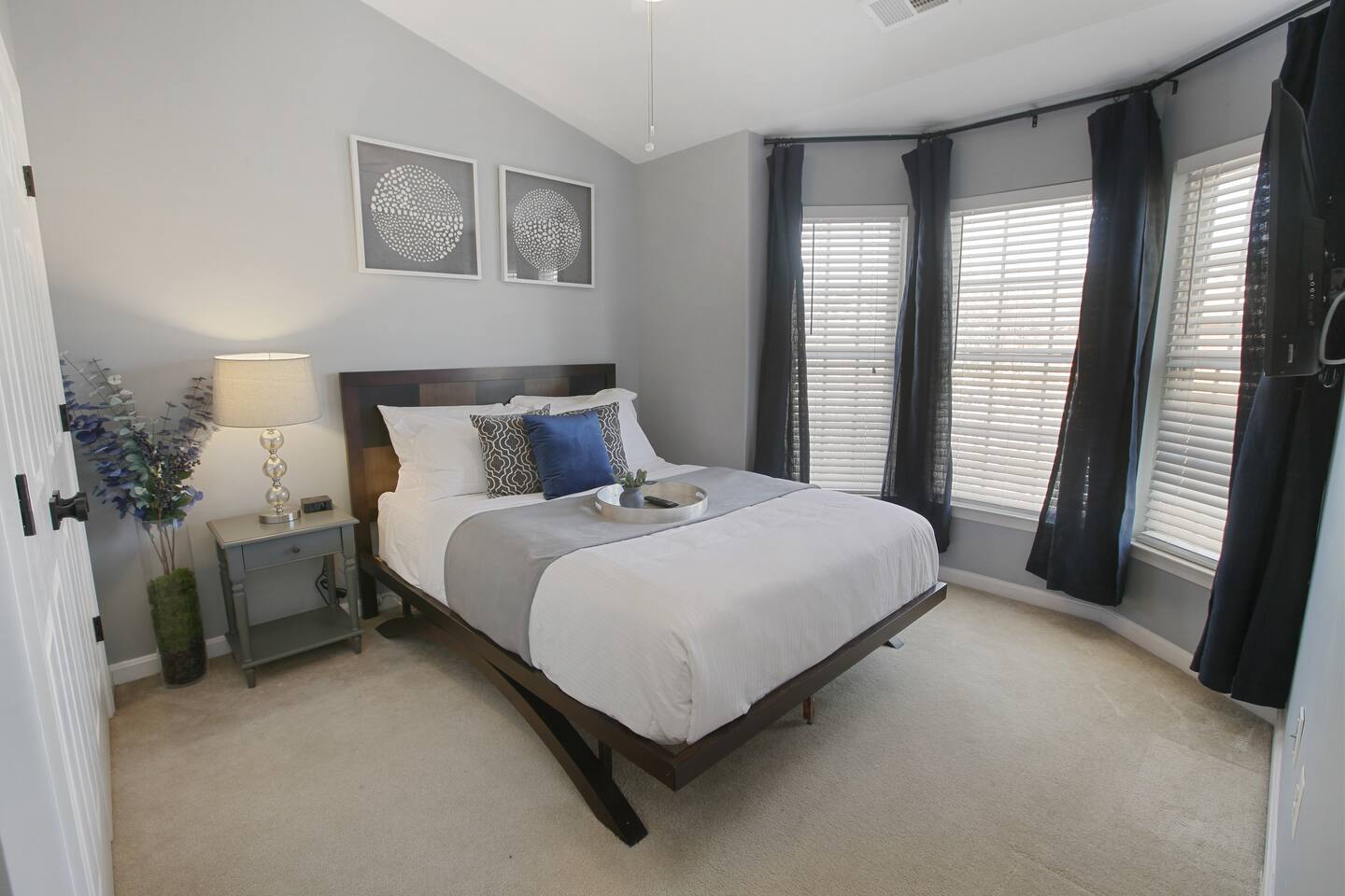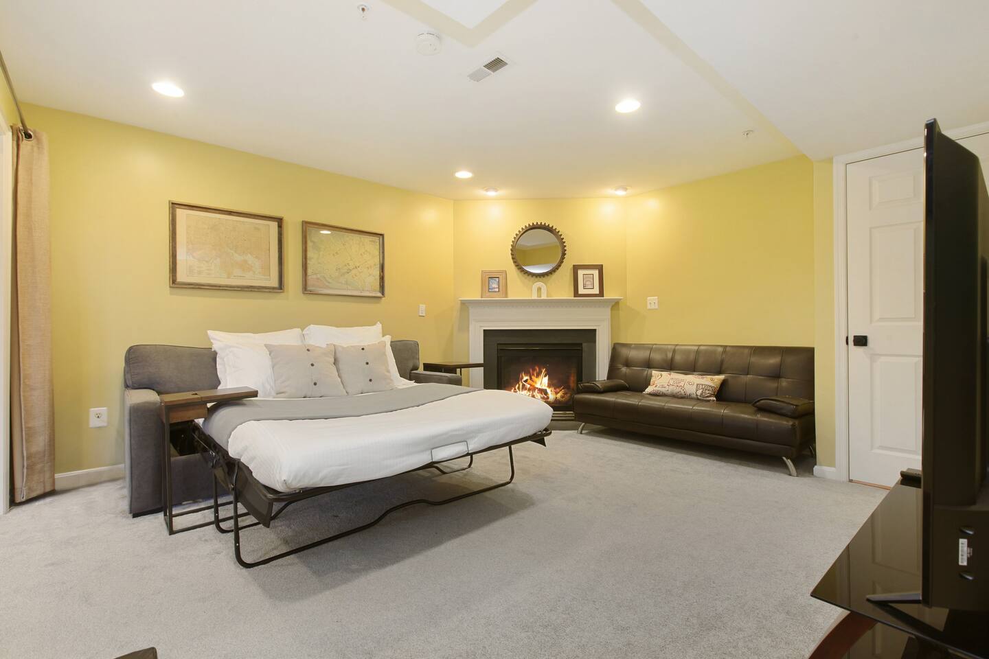 Enjoy your extended stay with us! This space offers: ☞ Professionally Designed, Furnished, and Appointed ☞ 4 Bedrooms Comfortably Sleeping 8 (1 King, 1 Queen, 1 Queen Sleeper Sofa, 2 Twins) ☞ 3 Full, 1 Half Baths, at least 1 bathroom on each level ☞ High Quality Helix Hospitality and GreenTea mattresses for a restful night's sleep ☞ Chef's Kitchen with gas cooktop, double convection wall oven, plenty of counter and cabinet space laid out for entertaining and hosting ☞ Oversized Trex Deck with outdoor bar top, dining set, and ambient lighting to set off the vibes ☞ 1 car garage + 1 car Driveway parking ☞ Tons of natural light, and black out curtains when you want it darker ☞ High Ceilings for a spacious airy feel -Dedicated work area with second monitor ☞ Reliable FAST Internet Connection (600mbps) ☞ Smart TVs in every living space w/ Apple TV and Chromecast ☞ Gas Fireplace ☞ 600+Mbps WIFI ☞ Full Sized Laundry in unit ☞ Fully Stocked Bathrooms w/ Paya brand bath amenities ☞ Nearby Walk/Bike Paths, Parks ☞ Central Baltimore/DC/Annapolis/BWI Location ☞ Mellow lighting throughout ☞ High quality sheets and towels ☞ Tranquil/serene neighborhood w/ Picturesque historic mansion Here are some of our Past Guest comments: "Terrific host - very helpful and communicative." - Kelly "The host was communicative and accommodating. Would definitely stay here again!" - Ayla ☆☆BEDROOMS☆☆ This spacious townhome accommodates 8 guests in 4 bedrooms. The primary bedroom is on the top level and is fitted with a king-size bed w/ Helix Midnight Mattress, private full bathroom with dual vanities and separate soaking tub and shower, has a sitting area, vaulted ceilings, ceiling fan, and dressers for clothing storage. The second bedroom has a queen-size bed, ceiling fan, large closet, and vaulted ceilings. The third bedroom has a twin sized bed with twin sized trundle both w/ GreenTea mattresses, a large closet, and vaulted ceilings. The fourth bedroom is on the first level and has a queen-sized pull-out sofa with memory foam mattress, and a full bathroom ☆☆BATHROOMS☆☆ There are three full and one-half bathrooms in this home, each stocked with all the essentials you need for your stay. The primary bedroom's private bathroom has dual vanities, and a separate soaking tub and shower. The second full bathroom is on the top level and has dual vanities and a regular tub. The third full bathroom is on the first level and has a walk-in shower. The half bath is on the middle level, located off the living room ☆☆KITCHEN AND DINING☆☆ The spacious and bright kitchen was designed for serious cooking and entertaining! Fully equipped with all appliances, utensils, cookware, and glassware you will feel right at home. With a 4-burner gas cooktop, double convection wall ovens, full sized dishwasher and oversized refrigerator, you will thank yourself for staying with us so you have the ability to make a full Thanksgiving meal if you wanted to! There is dining seating for 8, and a separate wine bar/coffee bar room. ☆☆OUTDOOR SPACE☆☆ There is an oversized Trex deck with a bar top and full L shaped sofa and dining set offering ample seating space. Set the mood by using our outdoor ambient lighting and enjoy the privacy among the trees. ☆☆LOCATION☆☆ Ellicott City is known for being one of the best places to live in the country. The neighborhood is picturesque with a renovated 1800s era mansion after which the community is named. You are 2 mins from Meadowridge Park and Sports Complex, 5 mins from Historic Old Ellicott City, 7 mins from downtown Columbia, 20 mins from Baltimore City, 40 mins from DC and Annapolis, and 45 mins from Historic Frederick. Howard county has numerous parks, playgrounds, lakes, and walking/biking paths ☆☆Guest Agreement☆☆ For any bookings of 30 days or more, the guest will be required to sign a Guest Agreement. A copy of this agreement will be provided. Guest Access: Self-check in w/ digital locks. You are welcome to use our oversized garage, or park on our extra-long driveway